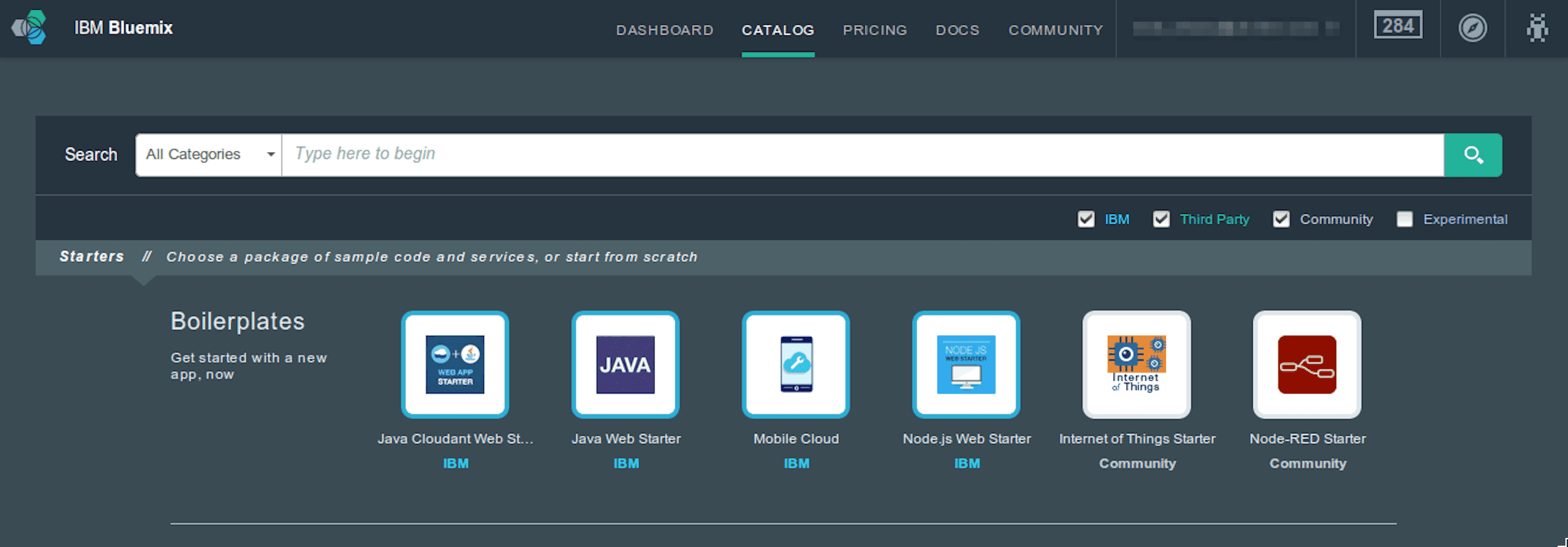 Node-RED in the original IBM Cloud catalog